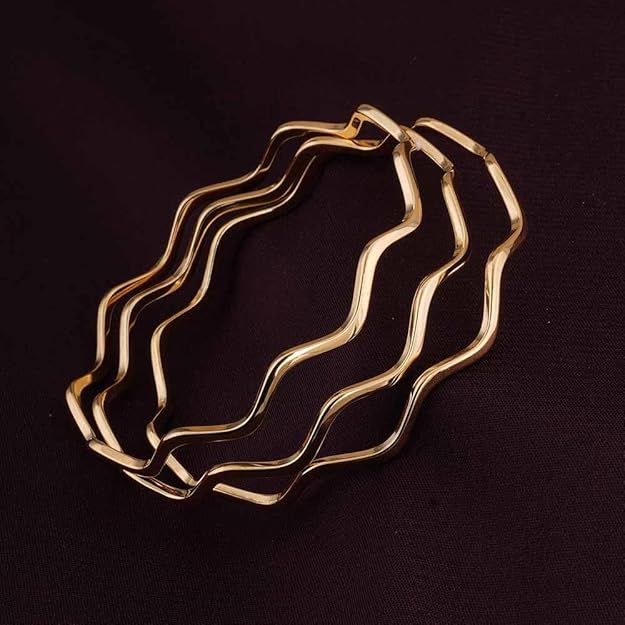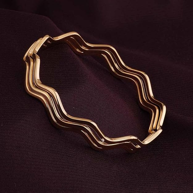 Gold Wavy Layered Bangle Bracelet for Women - Gift for Girls & Women | Waterproof & Anti-Tarnish Bangle Bracelet
