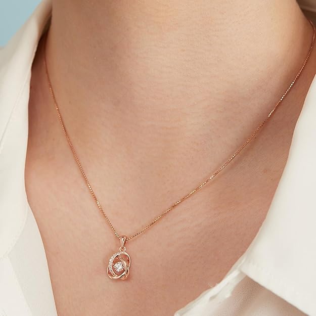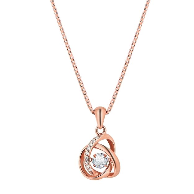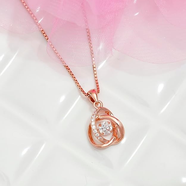 Sterling Silver Rose Gold Plated Chain Necklace With Cubic Zirconia CZ Interlinked Knot Pendant for Women | Gift for Women & Girls