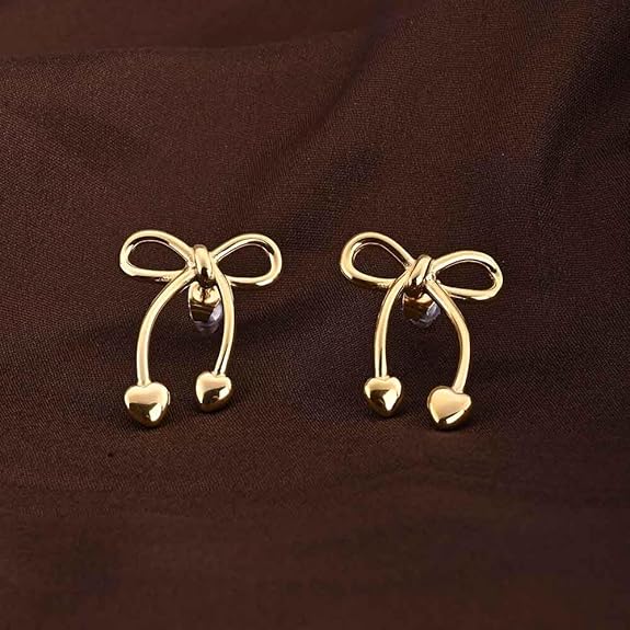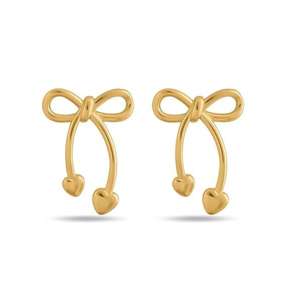 Unique Gold Bow & Heart Drop Earrings for Women - Gold Plated, Waterproof & Anti Tarnish Earrings | Gift For Women & Girls | Durable, Lightweight, & Comfortable Jewellery for Women